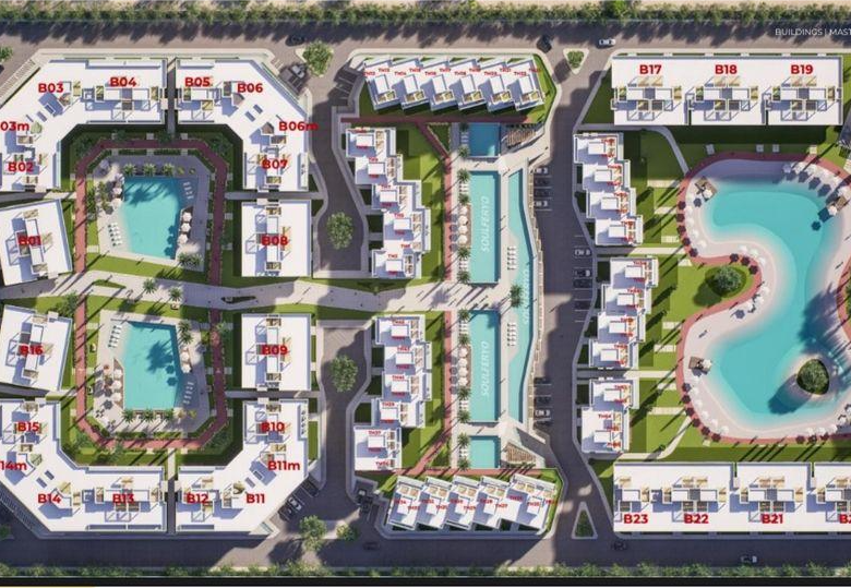 The project offers 1-, 2-, and 3-bedroom apartments, in addition to 4-bedroom townhouses.